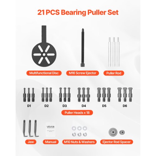 21-teiliges Lagerabzieher-Set: Dieses 21-teilige Lagerabzieher-Set umfasst Kugelgelenke in sechs verschiedenen Größen, die mit einer Vielzahl von Lagerformen und -größen wie 6005, 6006, 6007 und mehr kompatibel sind.