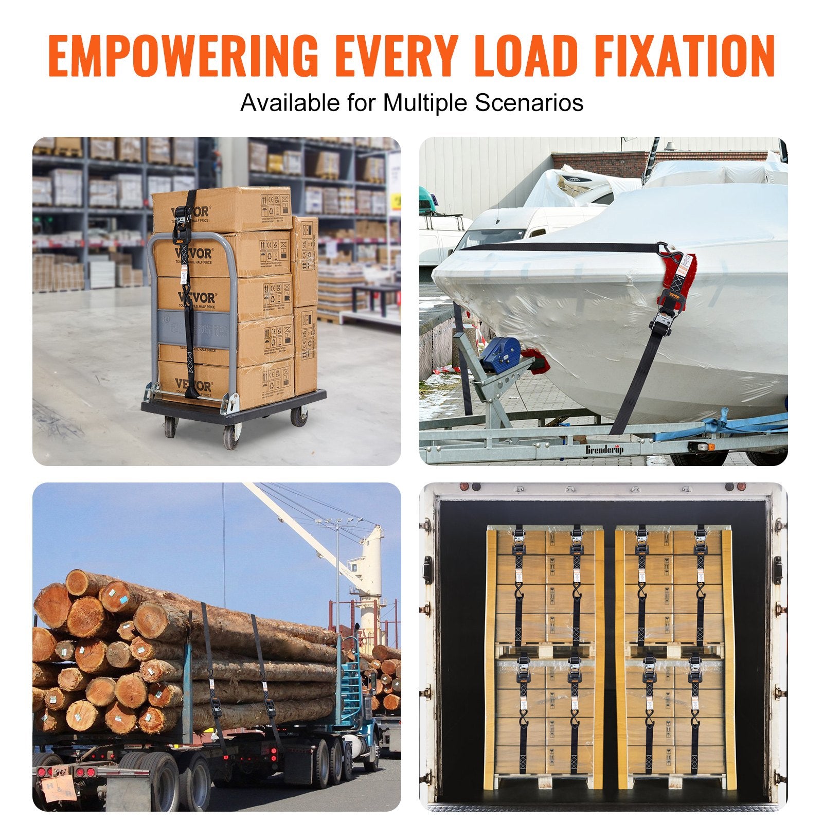 Vielseitige Anwendung: VEVOR-Spanngurte bieten dauerhafte und zuverlässige Sicherheit für den Transport einer Vielzahl kleiner und großer Gegenstände, einschließlich Motorrädern, Kanus, Kajaks, Geländefahrzeugen, Kisten, Booten, Möbeln, Rasenmähern, schweren Maschinen und anderer Fracht auf LKWs, Anhängern oder Dachgepäckträgern.