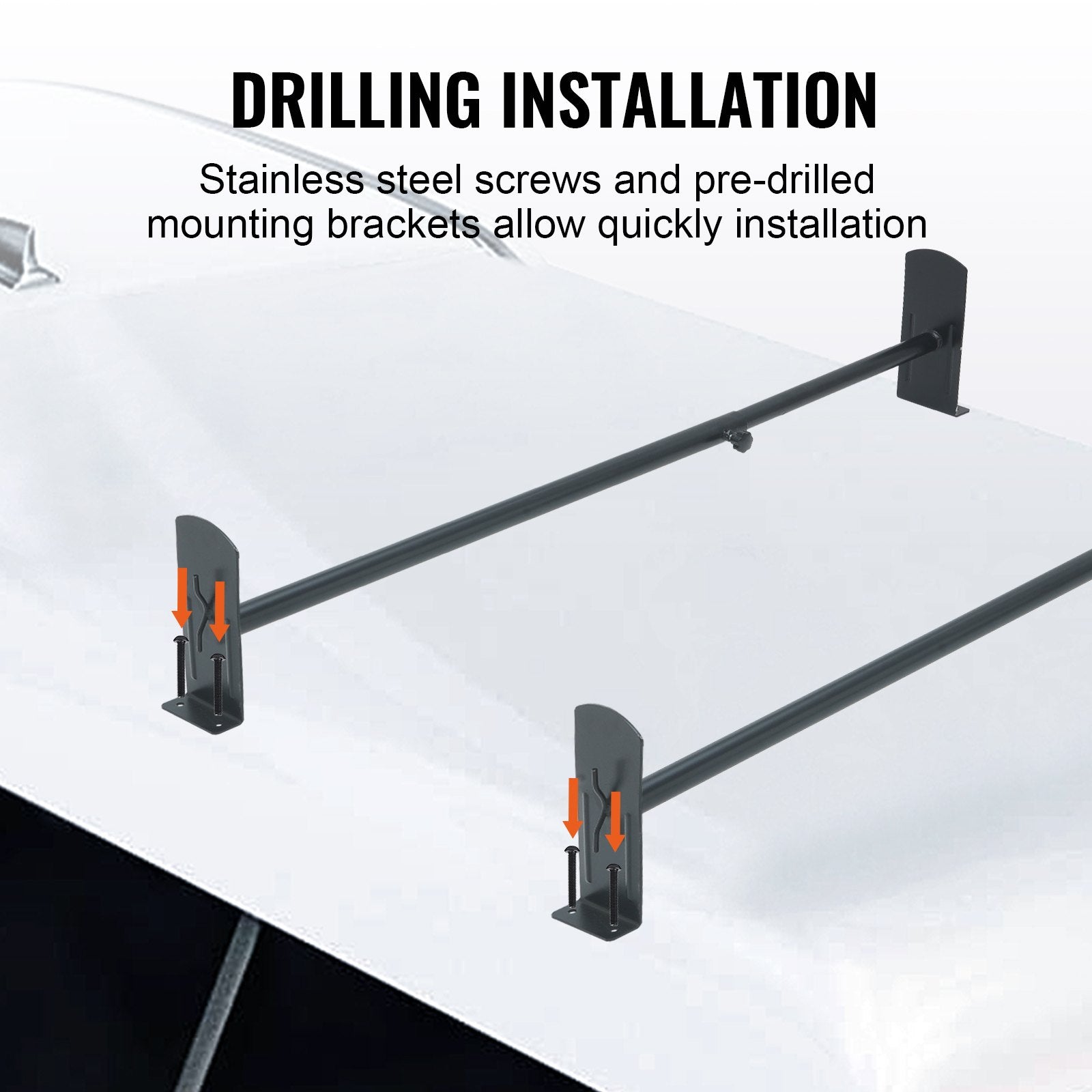 Dachgepäckträger für Transporter, Dachgepäckträger aus legiertem Stahl mit 2 Stangen, 227 kg Tragkraft, Regenrinnen-Dachgepäckträger, einstellbare Länge 910–1460 mm, Transporter-Leiterträger kompatibel mit Chevrolet Express, GMC Savana usw.