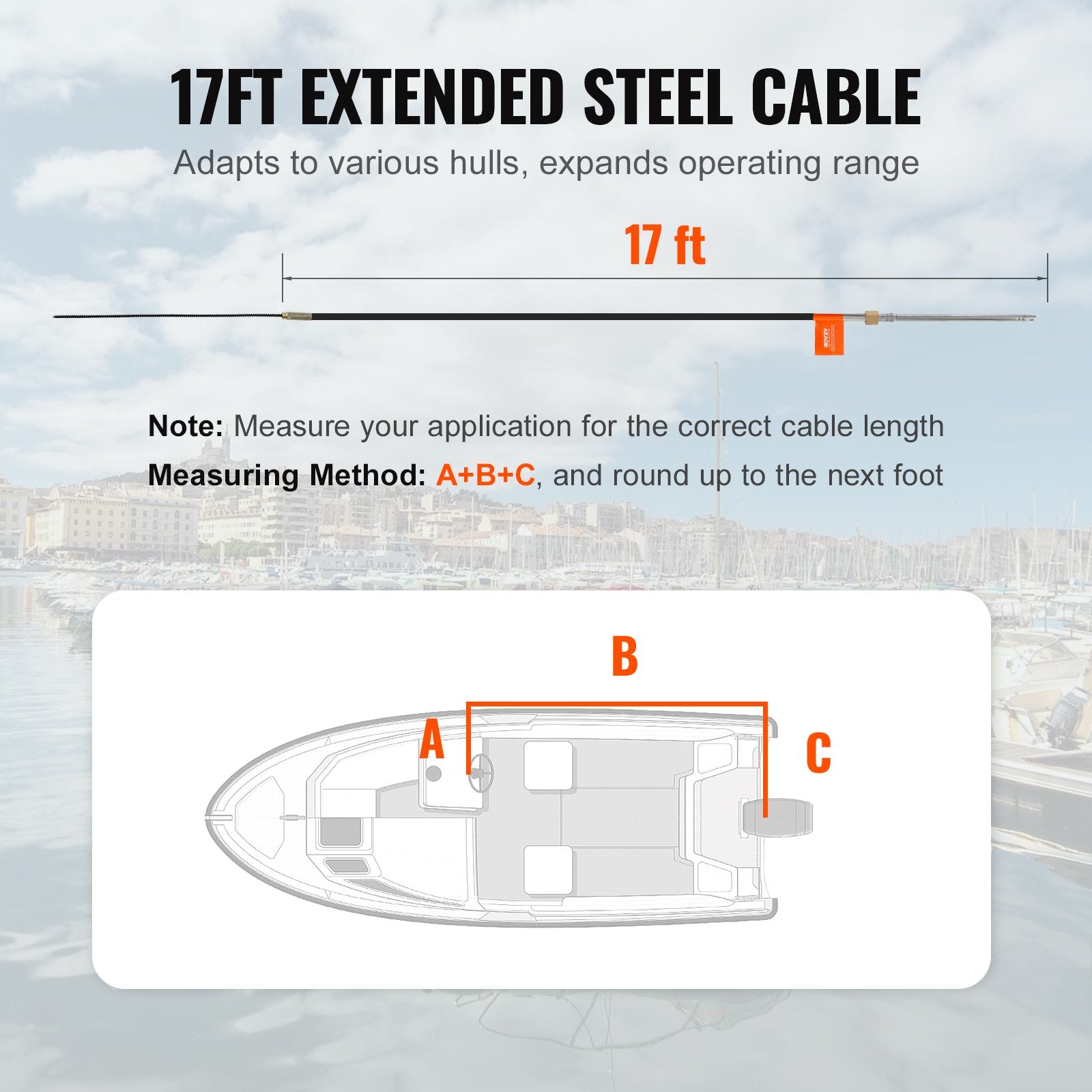Boots-Lenkkabel, 17 Fuß Außenbord-Marine-Drehlenkkabel, 1/2 Tonne hohe Zugfestigkeit, Stahl-Lenkkabel, kompatibel mit den meisten Einzelstations-Außenbord-Lenksystemen