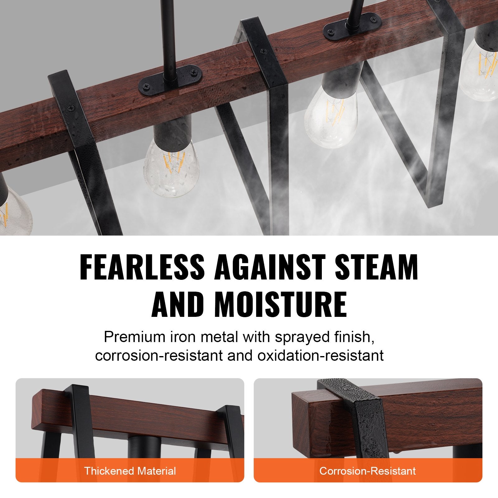Außergewöhnliche Haltbarkeit, langlebig: Unsere Esszimmerleuchter bestehen aus robustem Metall und verfügen über eine stabile Struktur, die eine lang anhaltende Leistung gewährleistet. Die Walnussmaserung fügt sich nahtlos in den schwarzen Eisenrahmen ein und verleiht Ihrer Einrichtung eine rustikale und dennoch elegante Note. Sie sind lichtbeständig und korrosionsbeständig und verleihen jedem Raum dauerhaften Charme und Eleganz.
