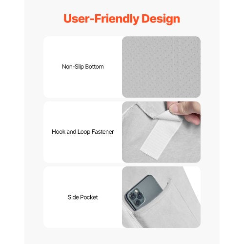 Durchdachtes Design: Die untere Klebekonstruktion ist stabil und rutschfest, die Seitentasche ist praktisch zum Aufbewahren kleiner Gegenstände und der Klettverschluss ermöglicht die Anpassung der Kissenhöhe, sodass Sie mit diesem orthopädischen Bettkeilkissen eine ganze Reihe durchdachter Erfahrungen machen können.