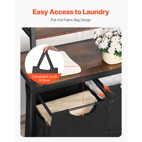 Multifunktionales Design: Die Oberseite des Wäschesortierers verfügt über eine 12 mm starke Tischplatte aus Spanplatte, die bis zu 30 kg belastbar ist. Sie kann zum Bügeln von Kleidung, zum Schutz vor Staub oder als Aufbewahrung für Wäschezubehör, Bedarfsartikel oder Schlüssel verwendet werden.