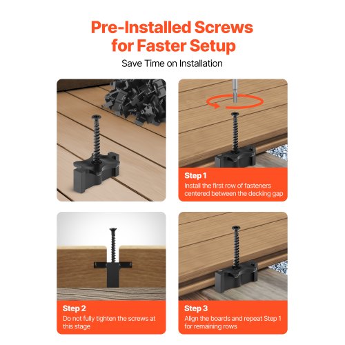 Snabb och enkel installation: Förinstallerad design sparar tid och ansträngning, ingen upprepad skruvning behövs. Stjärnskruvar ger bättre grepp och hållbarhet, vilket gör ditt altanprojekt snabbare och säkrare.
