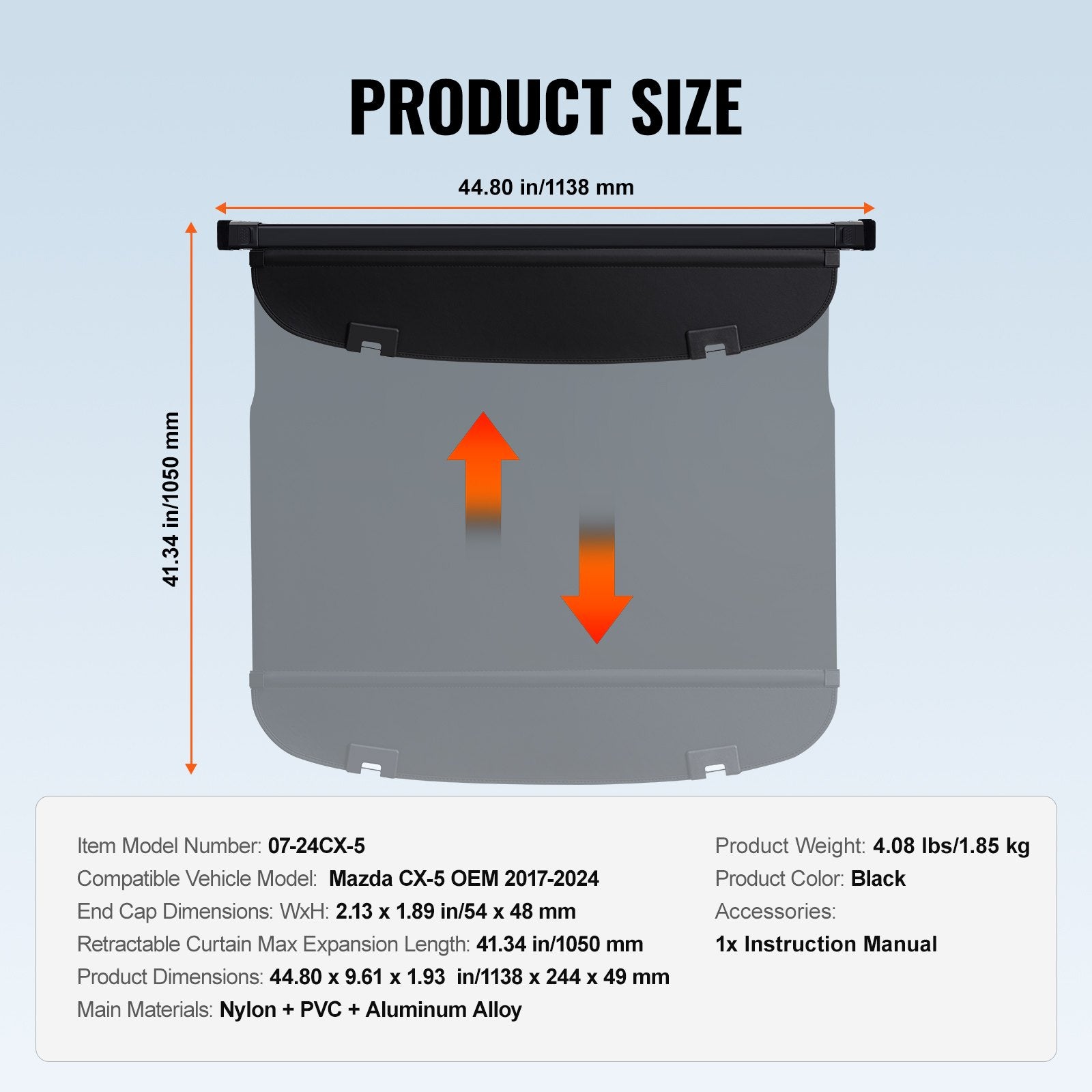 Fahrzeugkompatibilität: Diese einziehbare Laderaumabdeckung ist für den originalen Mazda CX-5 (2017–2024) geeignet. Bitte überprüfen Sie vor dem Kauf das Modelljahr Ihres Fahrzeugs. Diese Abdeckung passt sich nahtlos der Rundung Ihres Kofferraums an und sorgt so für einen ordentlichen und organisierten Stauraum.