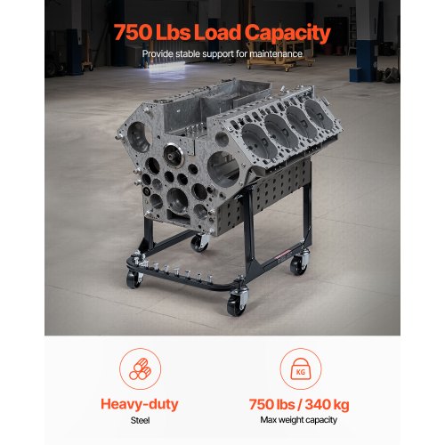 Stabile und zuverlässige Unterstützung: Der Motorständer hat eine maximale Tragfähigkeit von 750 lbs / 340 kg, besteht aus hochfestem Q235B-Stahl, bietet stabilen Halt für die Motorwartung und stellt sicher, dass er sich bei längerem Gebrauch nicht löst