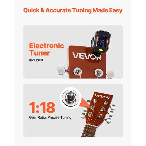 Spielen Sie mit Leichtigkeit: Diese Akustikgitarre verfügt über einen Stimmmechanismus für schnelles und präzises Stimmen. Das glatte Palisanderholz und die polierten Kanten sorgen für einen angenehmen Griff und ein angenehmes Spielerlebnis.