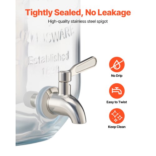 Tropffreier Wasserhahn: Der Getränkespender ist mit einem dicht schließenden Edelstahlhahn ausgestattet, der eine leckagefreie Ausgabe ermöglicht, sodass Sie sich keine Gedanken über das Aufwischen verschütteter Getränke machen müssen. So bleibt Ihre Getränkestation sauber und ordentlich.