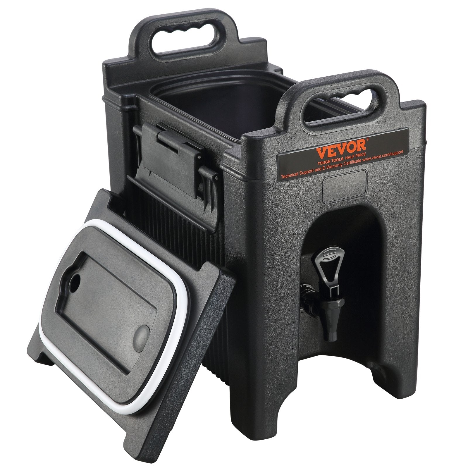 Isolierter Getränkespender, 2,5 Gallonen, Heiß- und Kaltgetränkespender aus LDPE in Lebensmittelqualität, Thermo-Getränkespender mit 0,9 Zoll dickem, zweistufigem Wasserhahngriff aus PU-Schicht, für Getränkeläden in Restaurants