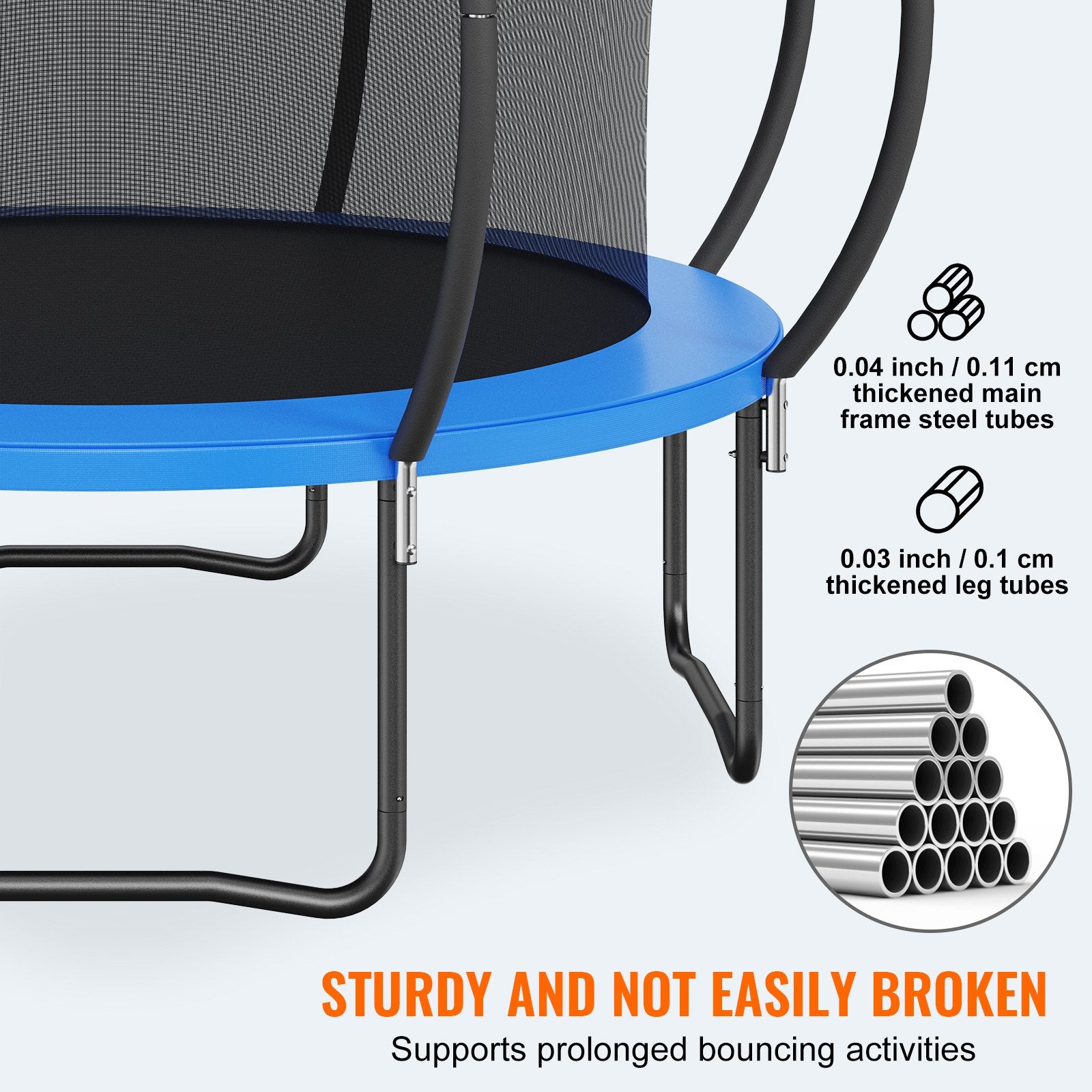 Langlebig und biegefest: Dieses Freizeittrampolin besteht aus hochwertigen Materialien. Das Ringbein-Design mit verdickten Stahlrohren sorgt für einen gleichmäßigen und stabilen Halt und macht es auch nach längerem Gebrauch biegefest. Das Trampolin wurde strengen Tests unterzogen und hält einem Gewicht von ca. 150 kg stand. Es ist daher auch für Kinder zum Springen geeignet.