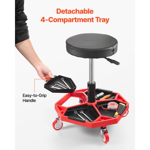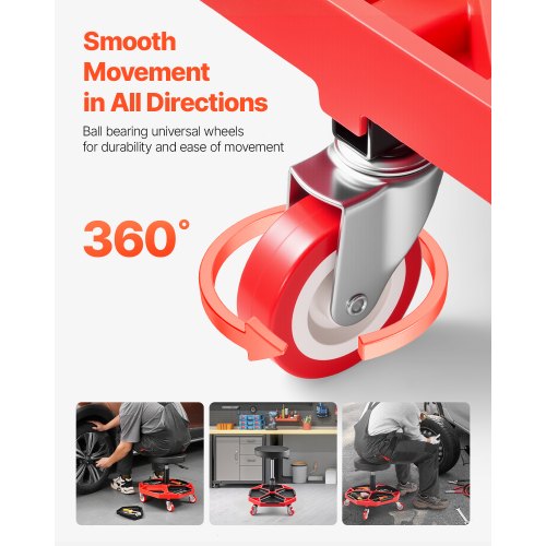 Rollbarer Mechanikerhocker, verstellbarer Garagensitz, 136 kg Tragkraft, mit Rädern | EU