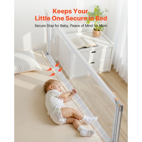 Stark och stabil: Denna sänggrind är tillverkad av tjocka, kraftiga stålrör och är stabil och deformationsbeständig. Strukturen låses ordentligt mot madrassen, vilket förhindrar att den förskjuts eller skjuts omkull – vilket skapar en säker miljö för både lek och vistelse.