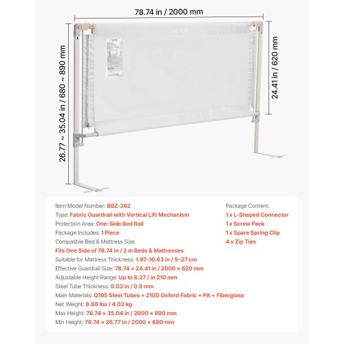 Säker och bekväm: Denna sänggrind för småbarn är utformad med detaljer så att din lilla sitter säkert. En F-formad kompressionsstång lämnar inget mellanrum mellan madrassen och grinden för att undvika att den kläms. Den effektiva skyddshöjden är 620 mm för att möta dina behov.