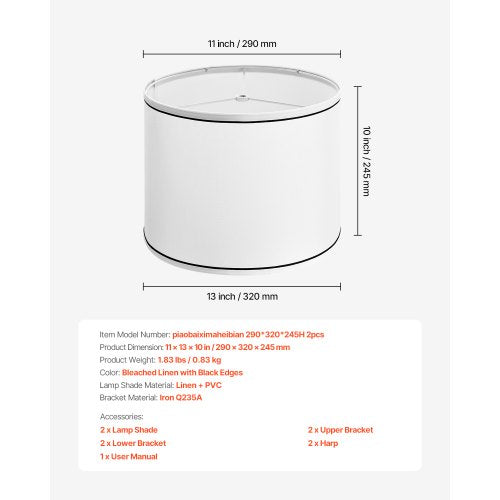 Lampenschirme 2er-Set 28 x 33 x 25 cm Mittlerer Lampenschirm mit Harfe (weiß)