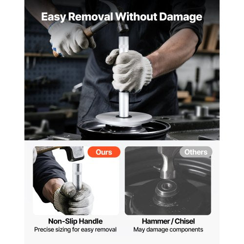 Förtjockat stålhandtag: Vårt lagertätningsdriverkit har ett långt och förtjockat handtag som effektivt överför slagkraft utan deformation. Handtaget har halkfria mönster för ett säkert grepp som inte lossnar.