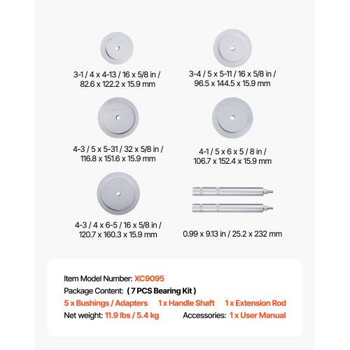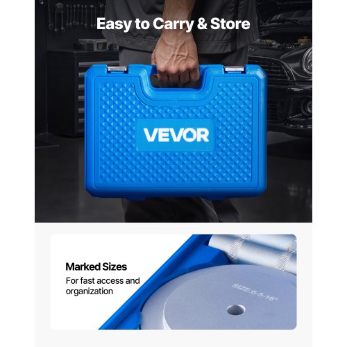 Omfattande storlekar: Vårt lagerpresskit hanterar lagerdemonteringsuppgifter i olika storlekar. Det är utrustat med 7 vanliga skivhylsstorlekar och flera monteringstillbehör för kompletta verktyg.