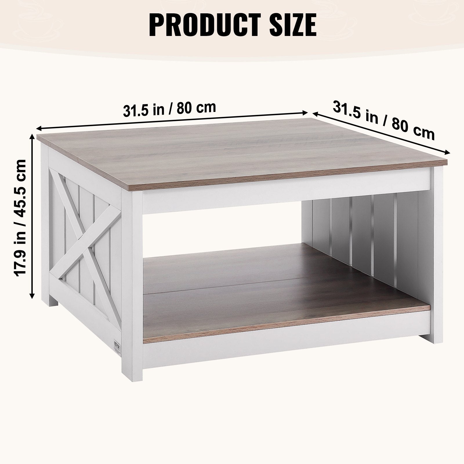 31,5" Farmhouse Couchtisch Quadratischer Tisch mit offenem Staufach