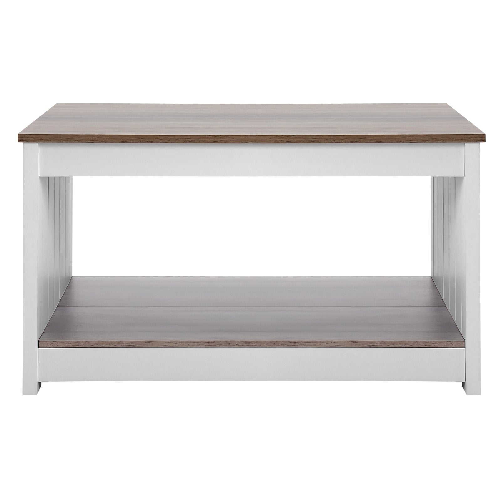 Geräumiges Design: Der Couchtisch im Landhausstil bietet nicht nur viel Stauraum, sondern dient auch als Arbeitsplatz, Schreibtisch, Esstisch und mehr. Sein einzigartiges halboffenes Design ermöglicht einfachen Zugriff auf kleine Dekorationen, Ornamente, Kunsthandwerk, Zeitschriften und andere Gegenstände von beiden Seiten.
