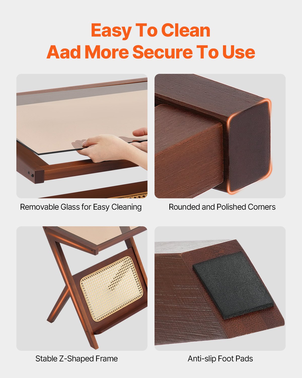 Einfache Montage und Reinigung: Dieser Bambus-Couchtisch wird mit sämtlichem notwendigen Zubehör und einer ausführlichen Anleitung geliefert, sodass er in ca. 15 Minuten schnell aufgebaut werden kann. Die abnehmbare Glasplatte lässt sich leicht reinigen – einfach mit einem feuchten Tuch abwischen.