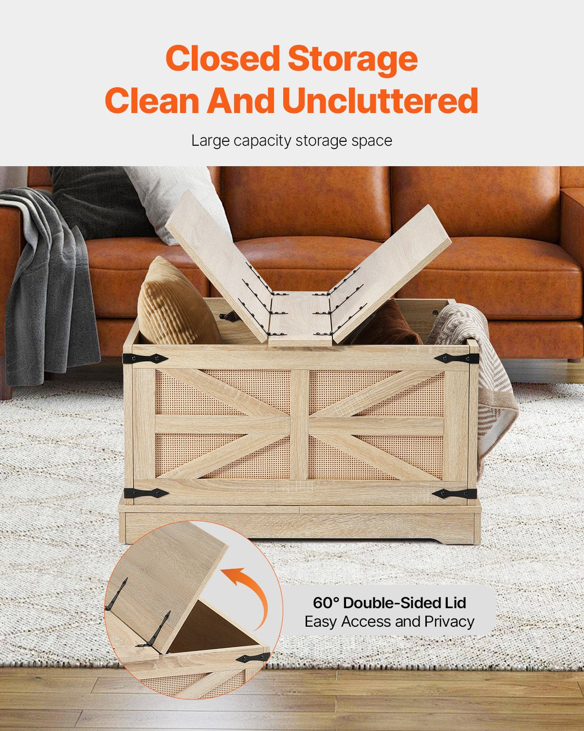 Geräumiger Stauraum: Dieser rechteckige Rattan-Couchtisch verfügt über ein Doppellift-Design mit großzügigem Stauraum, ideal für zusätzliche Decken, Kissen, Bücher oder selten genutzte Gegenstände. Geschlossene Tischplatten bieten besseren Staubschutz und mehr Privatsphäre. Die Tischplatte bietet Platz für Fotos, Dekoration oder einen Laptop und vereint so Aufbewahrung und Dekoration.