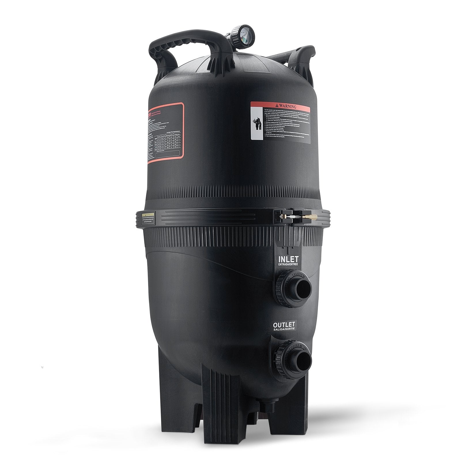 Manometer und Überdruckventil inklusive: Der Filter ist mit einem präzisen Manometer ausgestattet, mit dem Sie den Druckstatus in Echtzeit überwachen und so einen stabilen Betrieb des Geräts gewährleisten können. Zusätzlich haben wir oben ein automatisches Überdruckventil eingebaut, um die Explosionsgefahr durch hohen Wasserdruck effektiv zu verhindern. Diese Sicherheitsfunktionen sorgen für ein sicheres Gefühl bei der Verwendung des Filters.