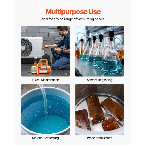 Vielseitig für jede Aufgabe: Ob Sie an der Wartung von Kühlanlagen, an Sanitärreparaturen, an der Harzentgasung, an der Holzstabilisierung oder an anderen Aufgaben arbeiten, diese Vakuumpumpe ist ideal für gewerbliche und private Anwendungen.
