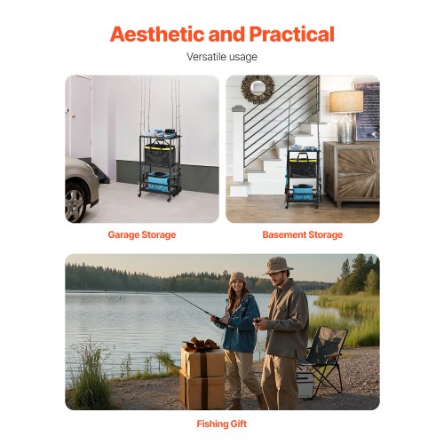 Multifunktionale Aufbewahrung: Der mehrschichtige Angelrutenhalter bietet reichlich Stauraum, sodass Sie große Angelboxen platzieren und kleineres Zubehör ordentlich verstauen können. So bleibt Ihre Angelausrüstung stets übersichtlich.