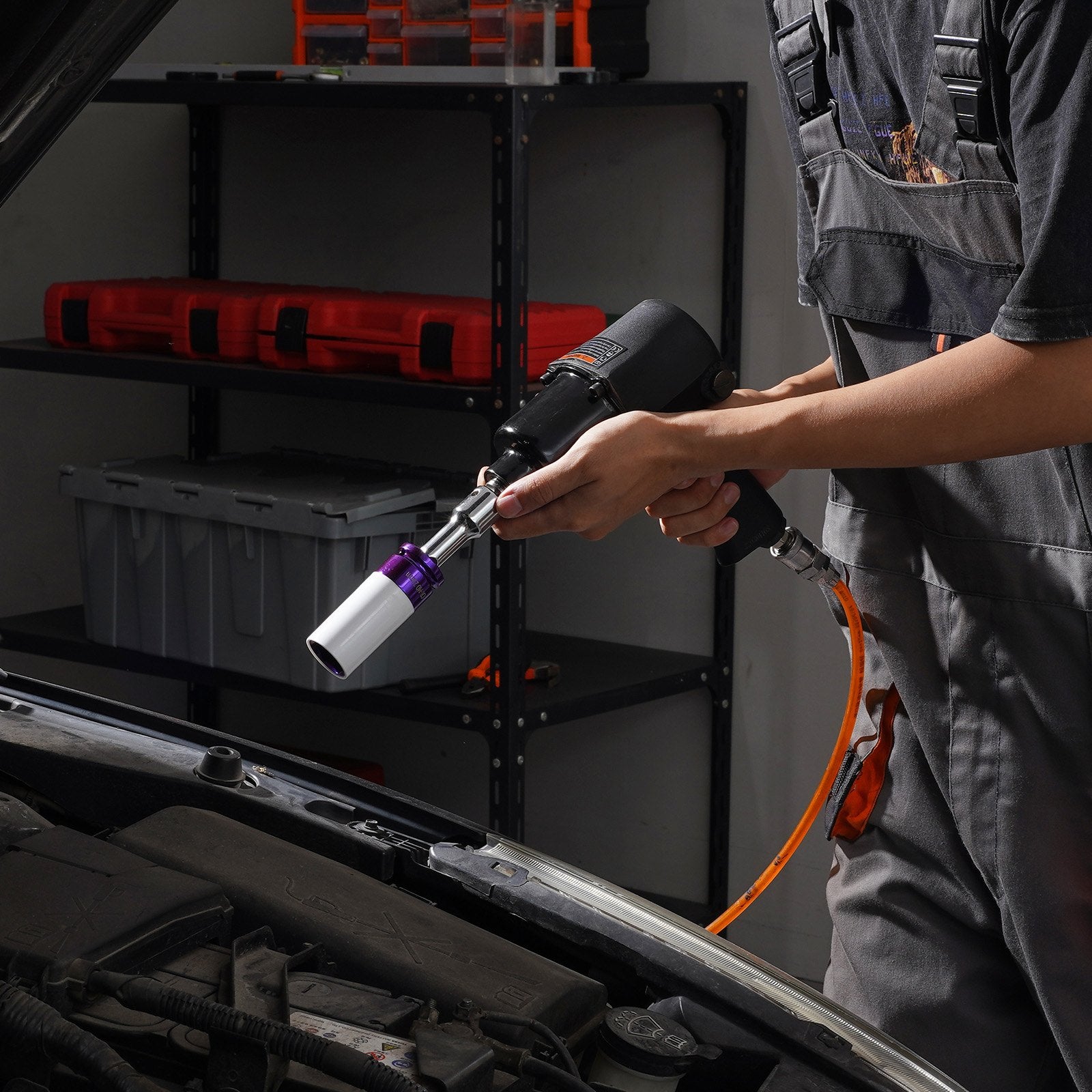 1/2-Zoll-Schlagmutternsatz: Dieser Satz von Mutternsteckschlüsseln umfasst 7 metrische Größen (17 mm, 19 mm, 21 mm, 22 mm, 23 mm, 24 mm, 27 mm) und macht den Reifen- und Bremsenwechsel effizienter.