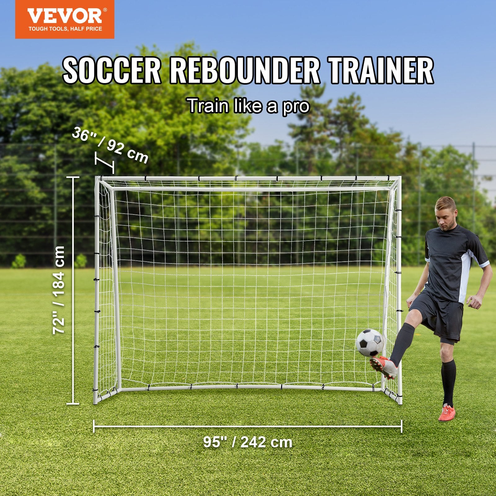 Fußball-Rebound-Trainer, 2,44 x 1,83 m großes Fußball-Trainingsgerät aus Eisen, Sport-Fußball-Rebounder-Wand mit doppelseitigem Sprungnetz und Tor, perfekt für Hinterhof-Training, Solo-Training, Passen