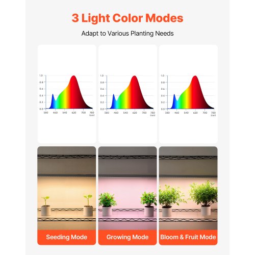 Fullspektrum LED-lampor: Inomhusväxtstället inkluderar 3 st 30W LED-växtlampor (23,23 tum vardera). Varje lampa har en oberoende strömbrytare, vilket ger växterna skräddarsydd belysning. Hög ljusgenomsläpplighet och bred täckning ger optimalt ljus för varje tillväxtstadium.
