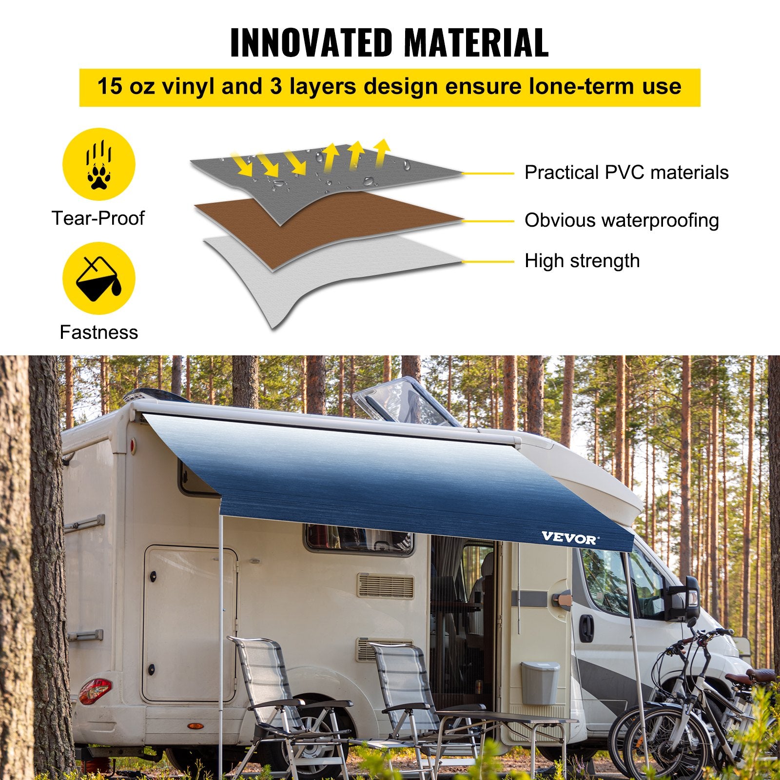 Premium-Vinylmarkisen: Diese Wohnmobil-Ersatzmarkise besteht aus 15oz Vinyl, ist wärmeisolierend und wasserdicht und hält den Innenraum Ihres Wohnmobils kühl. Sie ist robust und langlebig genug, um Ihr Wohnmobil lange zu begleiten. Vinylmaterial ist zudem leichter zu reinigen, sodass Sie sich weniger Sorgen um Baumharz und Schmutz machen müssen.