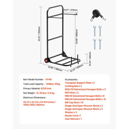 Effiziente Lagerung: Mit den Maßen 1100 x 565 x 580 mm/43,3 x 22,2 x 22,8 Zoll hat dieser Esszimmerstuhlwagen eine maximale Tragkraft von 100 lbs und bietet Platz für Klappstühle verschiedener Größen. Er kann bis zu 10 Stühle gleichzeitig transportieren und ermöglicht so einen schnellen Aufbau.