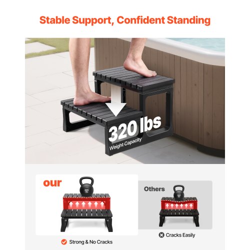 Kraftfull lastbärande 147 kg: Detta steg för bubbelpoolen ger bergfast stabilitet upp till 147 kg och motstår böjning och brott, så att du kan stå med självförtroende. Kliv in med självförtroende idag.