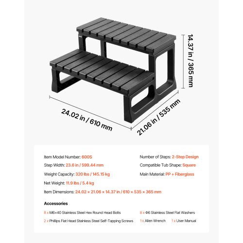 Snabbtömmande steg: Spa-steget har förstorade steg som leder bort vatten för att minska vattenansamlingar; barfotavänligt för säkra och bekväma klättringar på din spa-trappa. Gör varje klättring smidigare och säkrare.