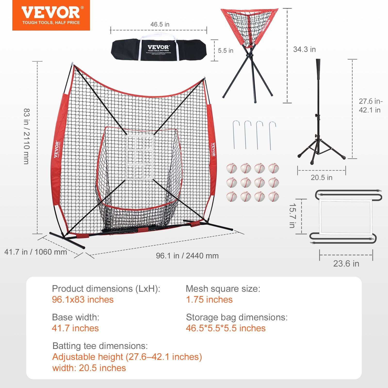 7x7ft Professional Training Set: In addition to the base net and frame, this softball baseball training net also includes a square nine-grid goal frame, a tee box, 12 baseballs and a triangular collector. A professional and complete set of accessories helps players better practice pitching and catching, and improve their skills quickly. What's more, it comes with a dedicated storage bag for quick and convenient packing.
