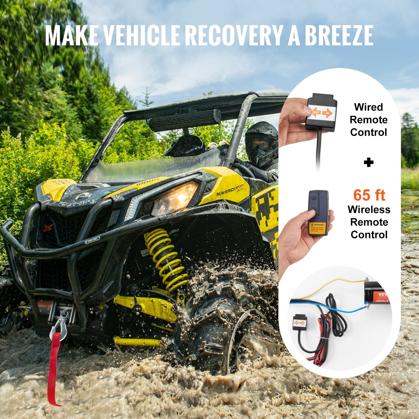 Your Vehicle's Backup Power: Designed specifically for off-road recovery, our heavy-duty electric winch offers a powerful 4000 lbs of towing capacity. When your vehicle gets stuck in the mud or caught in a downpour, this winch provides the extra pulling power you need to get back on track quickly. Ideal for towing small vehicles like ATVs and UTVs, ensuring your adventures never stop.