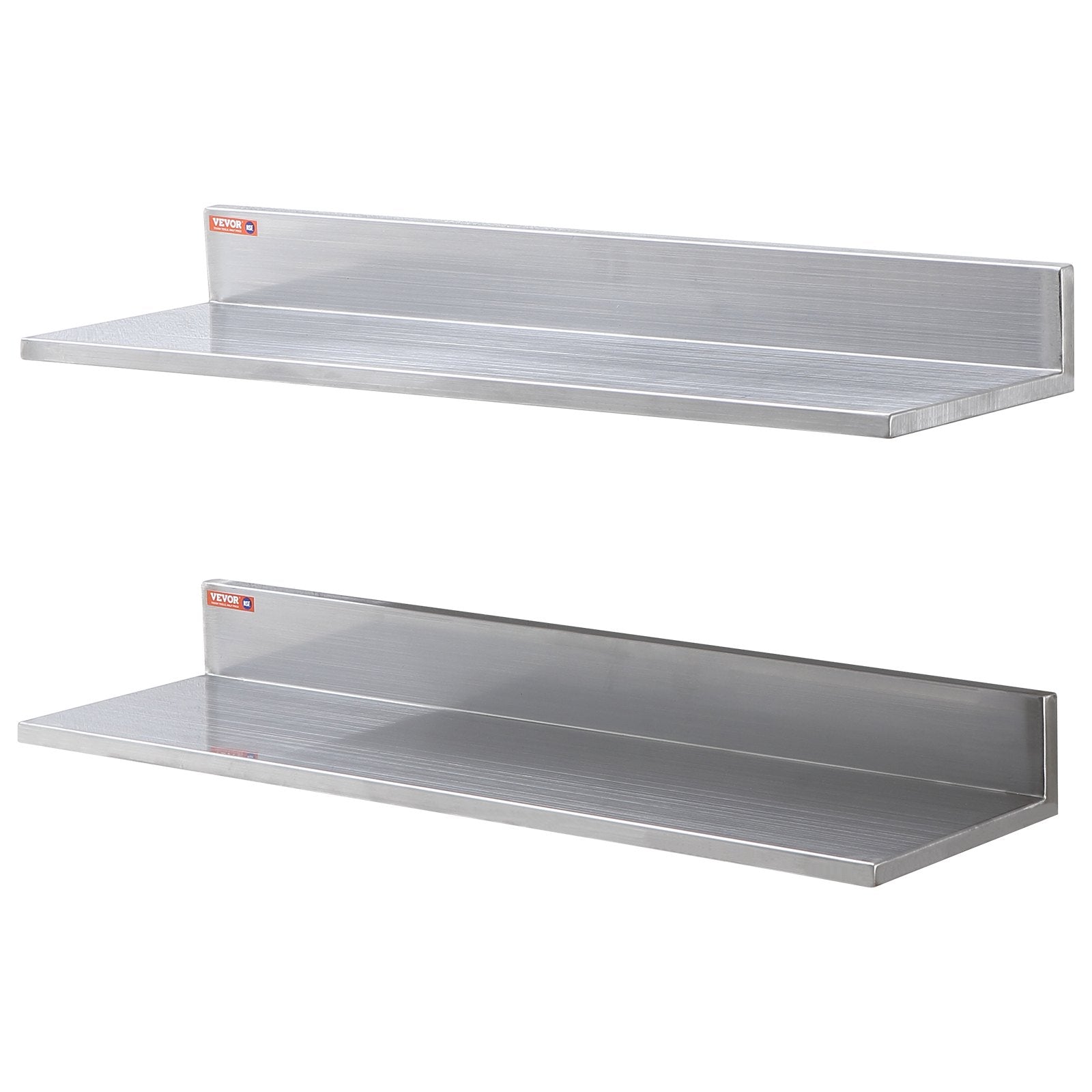 Solid and Sturdy Construction: Our wall-mounted shelf is made of NSF-certified 430 stainless steel, ensuring durability and easy cleaning. The surface has a brushed finish, built to resist daily scratches, corrosion, and stains. So don't worry about food and liquid spills ruining your surface.