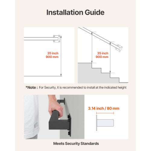 Compatible with multiple wall types: Our stair railing wall bracket is designed to be compatible with wooden, brick or concrete walls. We recommend installing the handrail at a height of approximately 900mm from the ground.