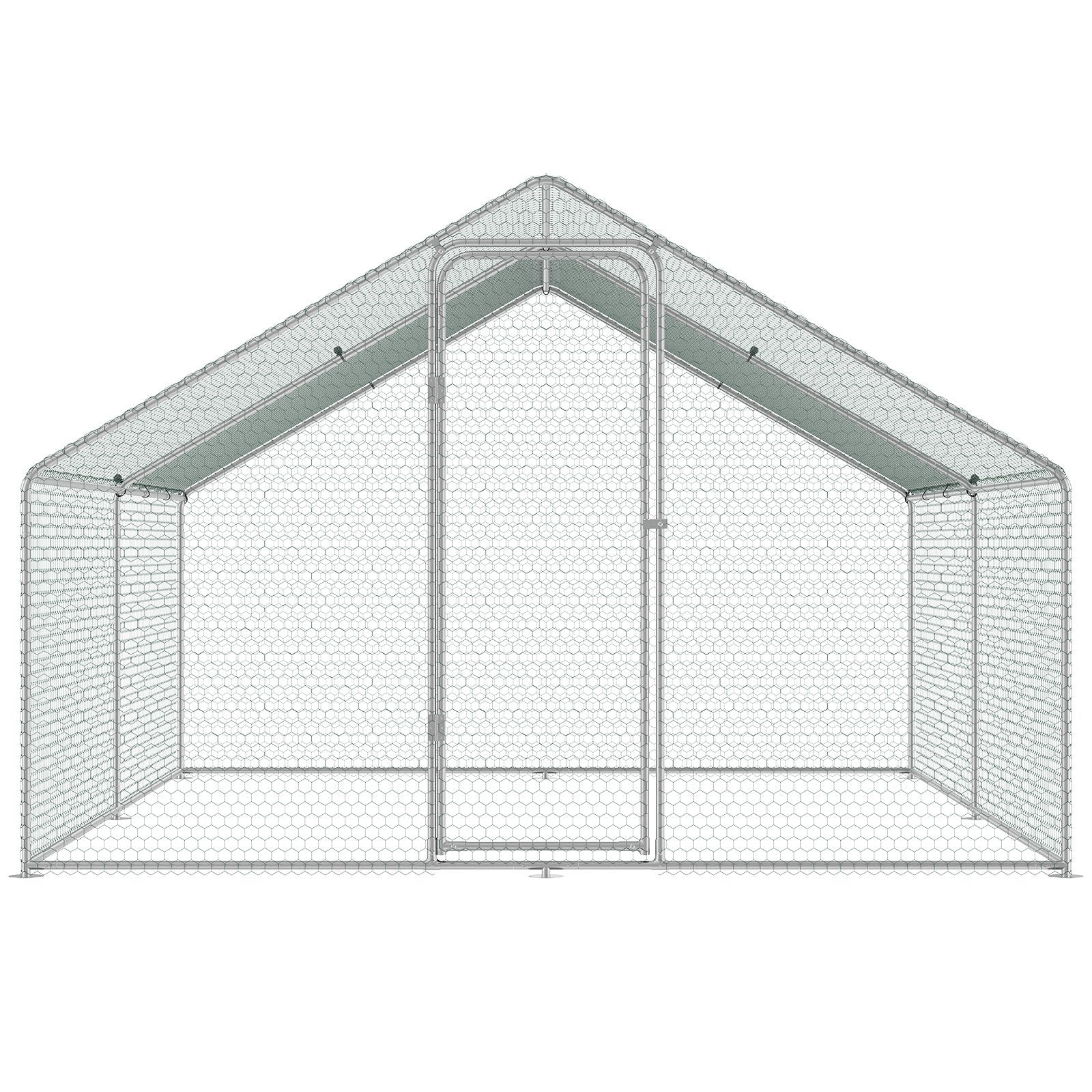 Metal Chicken Coop Walk-in Chicken Run with Waterproof Cover 9.8x13x6.5 Feet