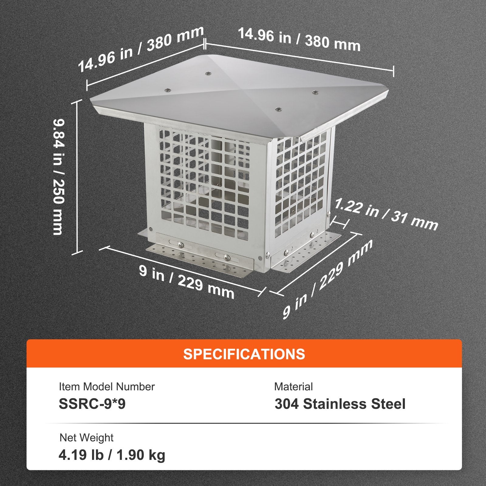 Chimney cap 228.6 x 228.6 mm, 304 stainless steel chimney cap, not easy to collapse & practical accessories & easy installation, fits mesh chimney cover outside clay smoke pipe, silver