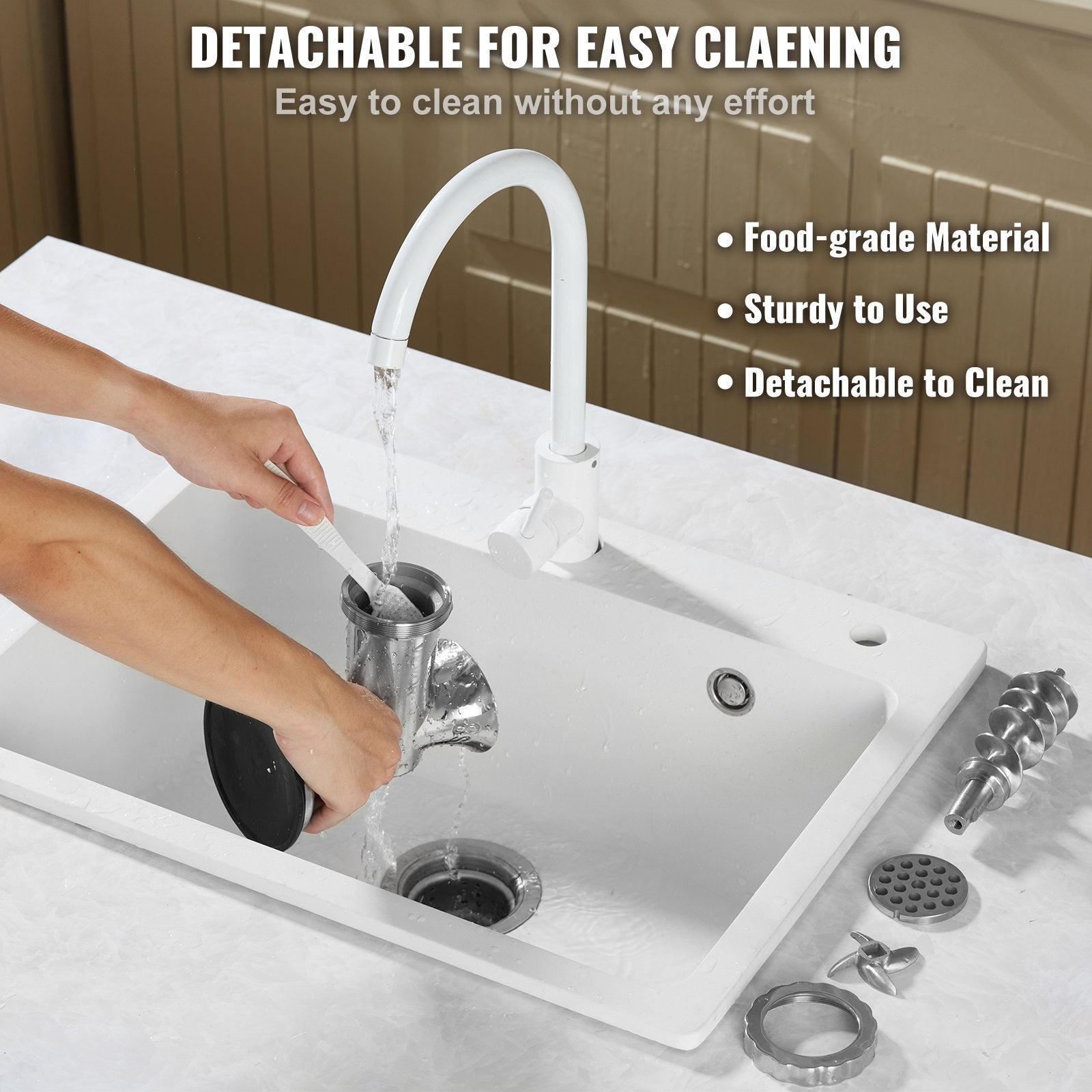 One Meat Grinder, Endless Uses: VEVOR multifunctional manual meat grinder makes it easy to grind vegetables and meat to make meatballs, cakes, sausages and more. It also comes with 5mm and 8mm cutting plates, 1 cross cutting blade, 1 stainless steel sausage tube, 1 cake attachment, 1 grinding head and meat rod, meeting the different needs of different culinary creations.
