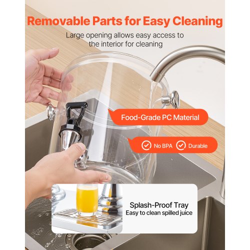 Drip-free faucet: The beverage dispenser features a spring-loaded faucet with a tight-fitting switch that prevents leaks and drips, saving you the hassle of cleaning. The drip tray catches excess water and keeps your beverage station clean and tidy.