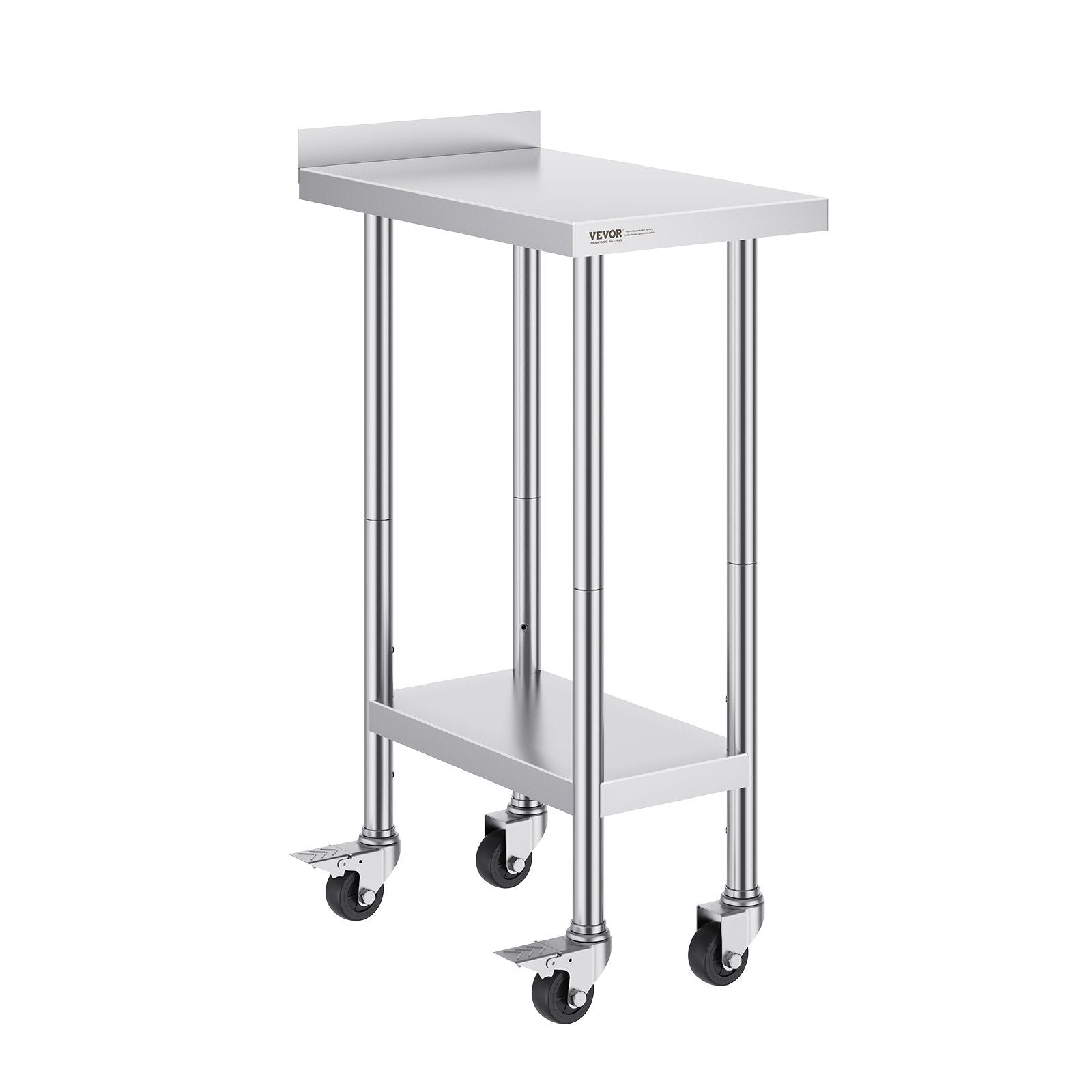 Stainless Steel Work Table Commercial Dining Table 24"x15" with Wheels