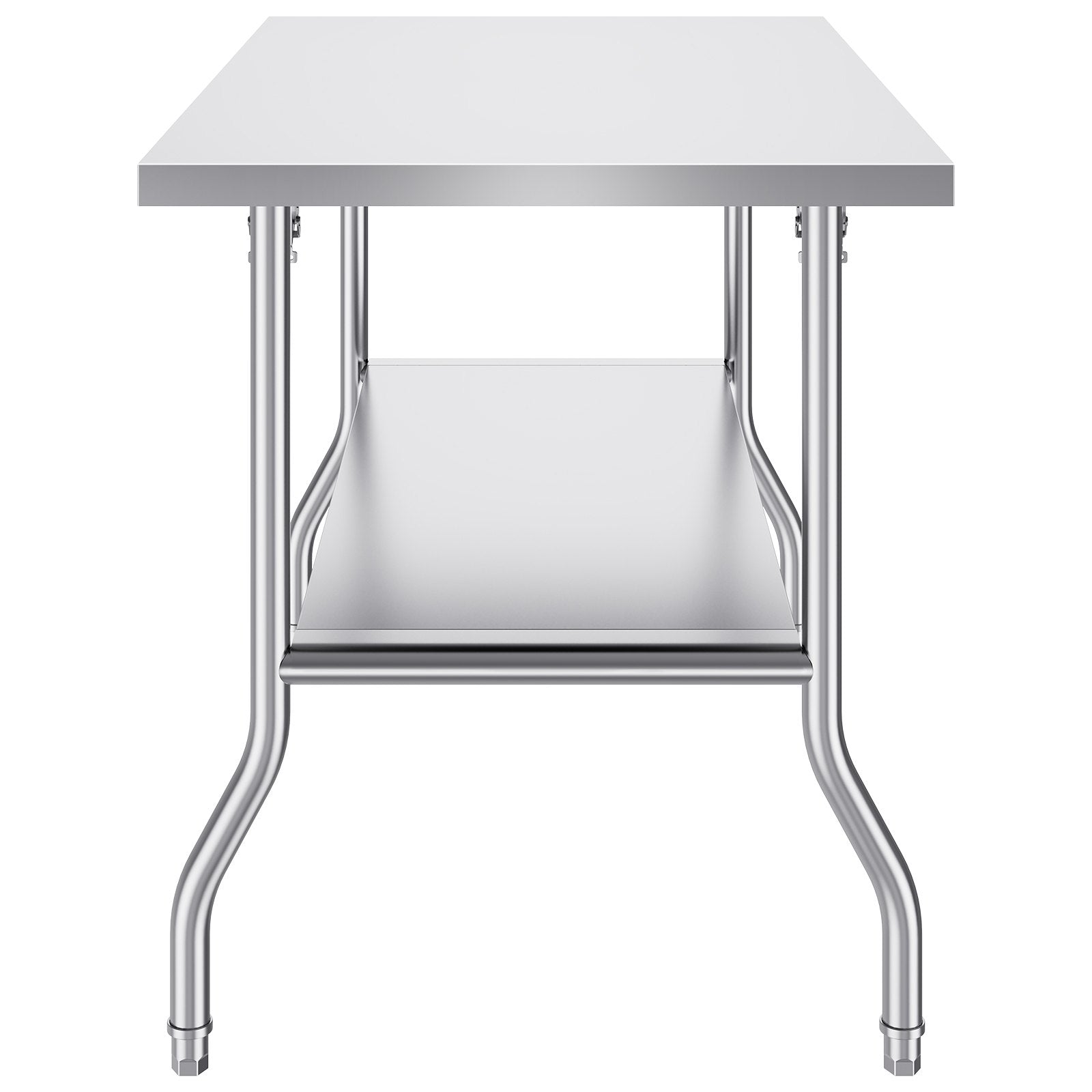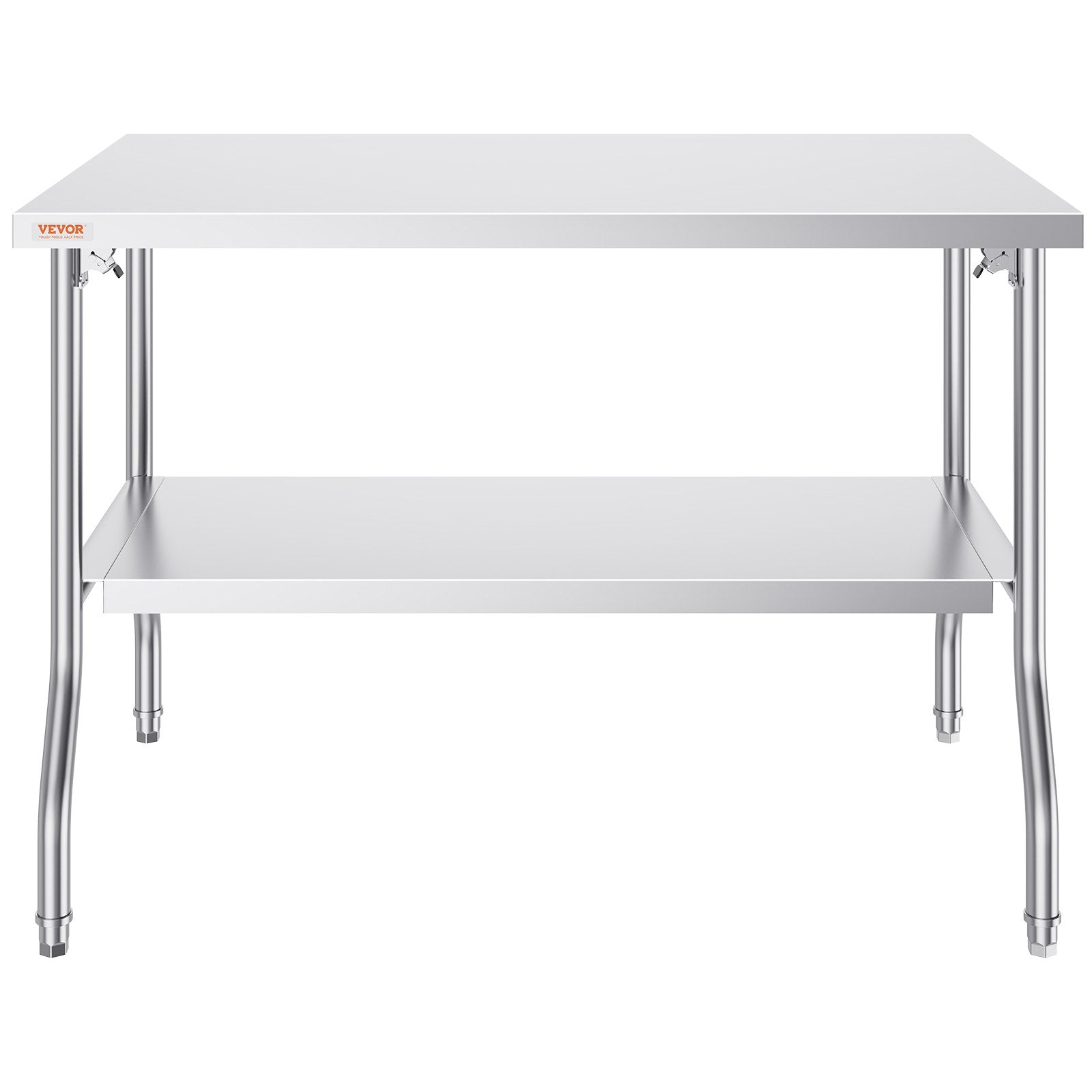 High-quality stainless steel: This workbench, measuring 48 x 30 x 34 inches, is made of SUS201 stainless steel for the tabletop, shelves and legs. It offers superior rust resistance, an elegant appearance and a smooth surface that is easy to clean with a simple wipe. NSF certified, it meets strict public health standards, ensuring long-term protection for your health.