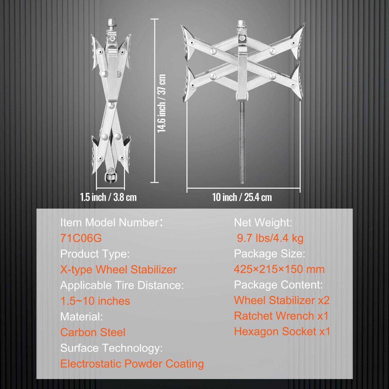 Camper Wheel Chock Stabilizer, X-Shaped RV Stabilizer Wheel Chock, Fits 1.5" to 10" Tire Space, 2 Sets of Wheel Chocks with Ratchet Wrench and Storage Bag for Campers Travel Trailers Trucks