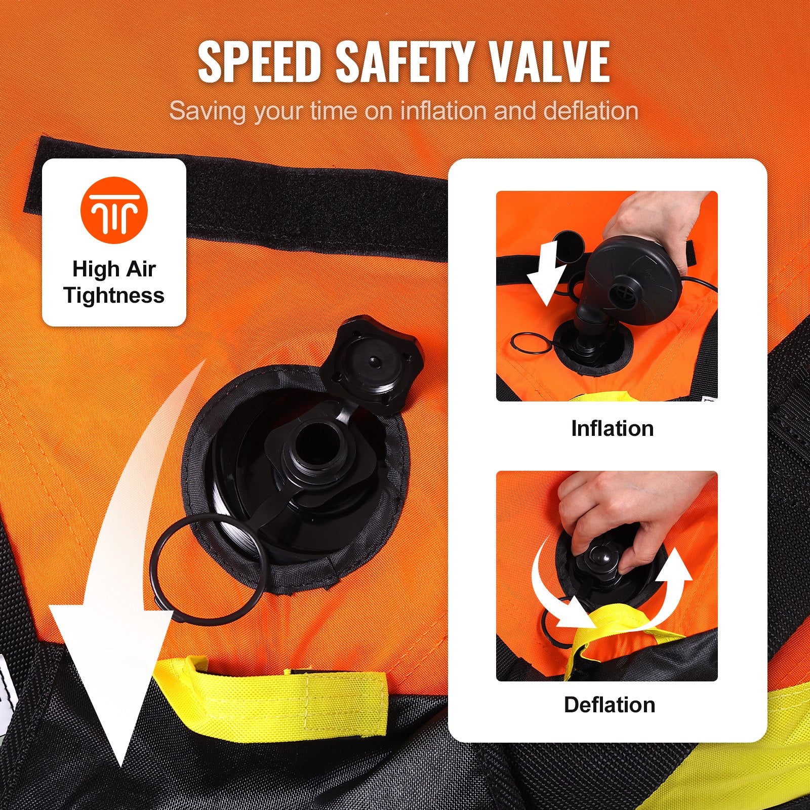 Comfortable Riding Experience: Experience a safe ride with our D-shaped boating sofa tube, designed with high backs and wide sidewalls to prevent falls into the water at high speeds. The towable tube features 10 EVA grips for versatile and comfortable hand-holding options, along with 2 boarding straps for easy re-entry onto the tube after a splash.
