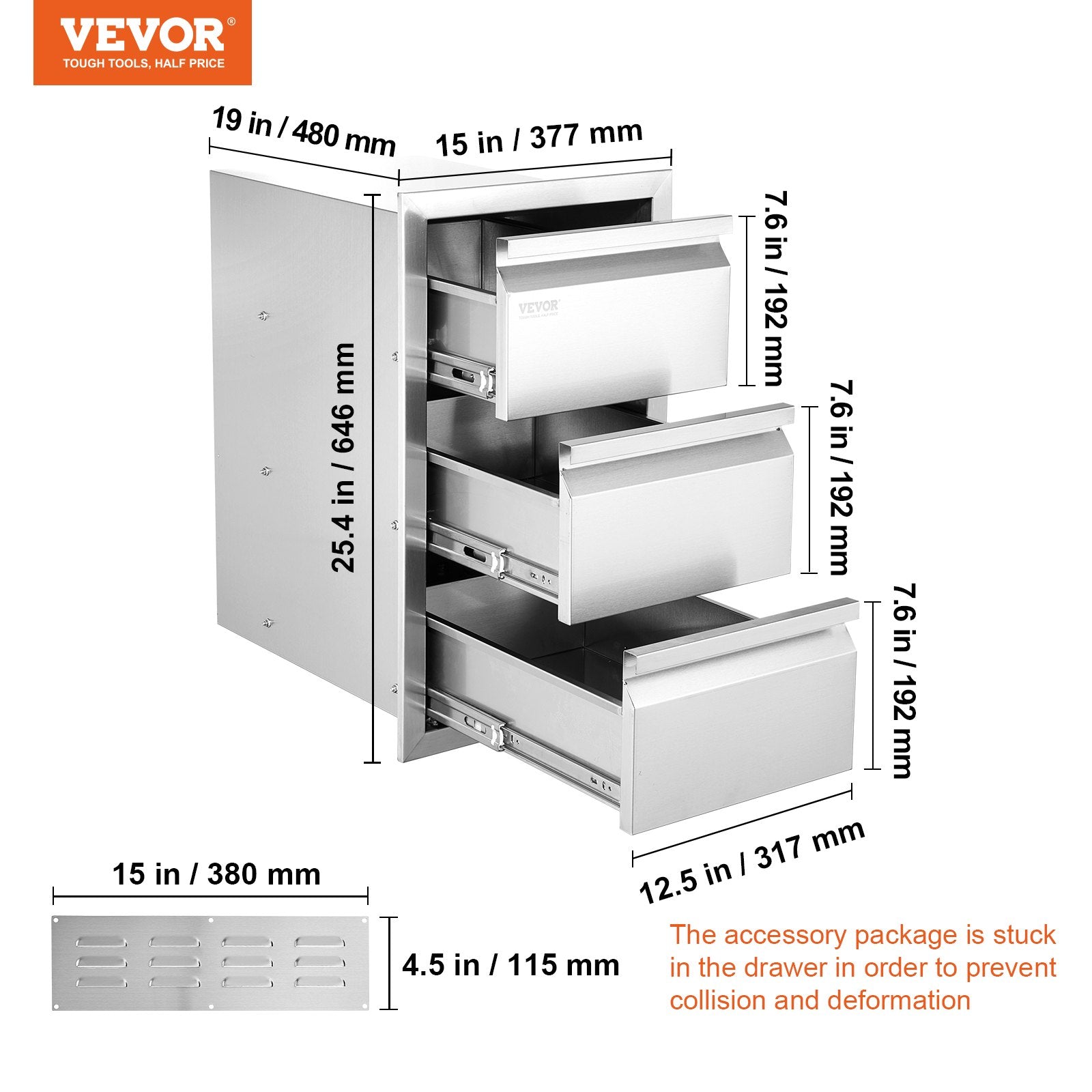 201 Stainless Steel Drawer with Triple Access Outdoor Kitchen BBQ Island 19" W x 26" H