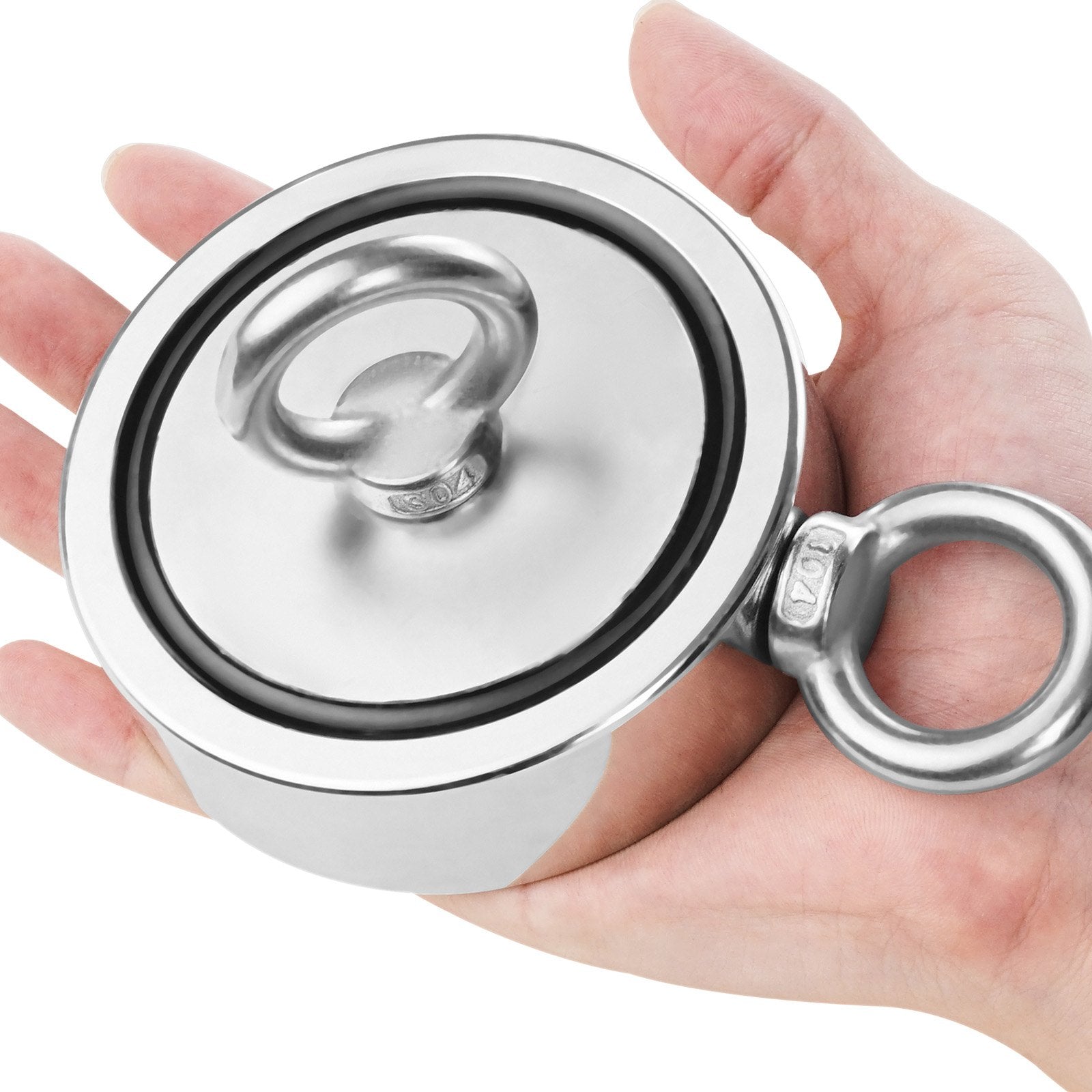 Double-sided Strong Magnet: Made with premium N35 neodymium material, the double-sided fishing magnet design greatly improves functionality and provides a maximum pulling force of up to 1700 LBS / 771 Kg. You can easily retrieve lost keys or underwater treasures.