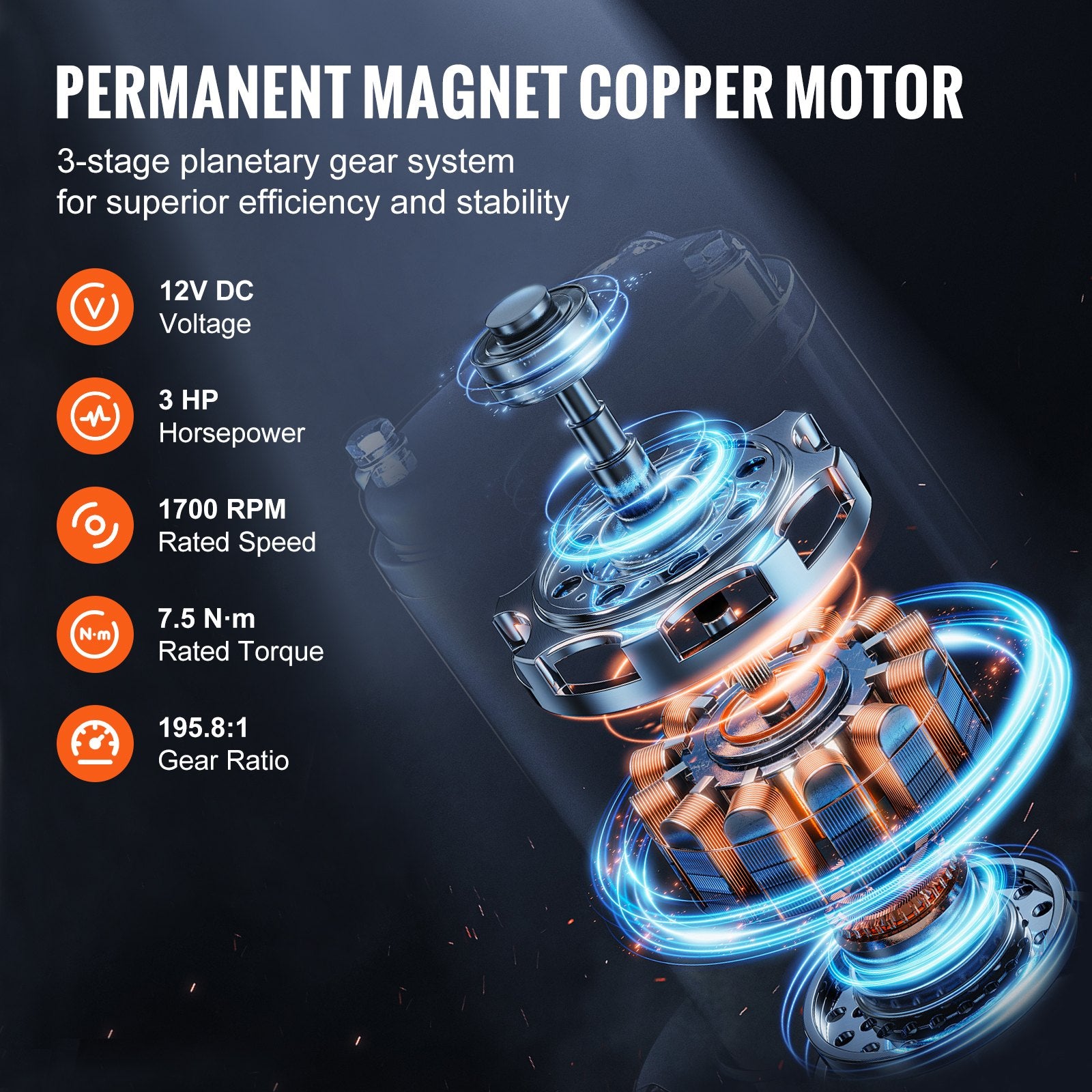 Power to Get You Out of Any Trouble: Our truck winch is powered by a 12V DC/3HP permanent magnet copper motor, delivering consistent power when you need it most. With an advanced 3-stage planetary gear system and a gear ratio of 195.8:1, this winch ensures powerful pulling capacity, even in harsh weather and deep mud. Get ready to take on any challenge with confidence!