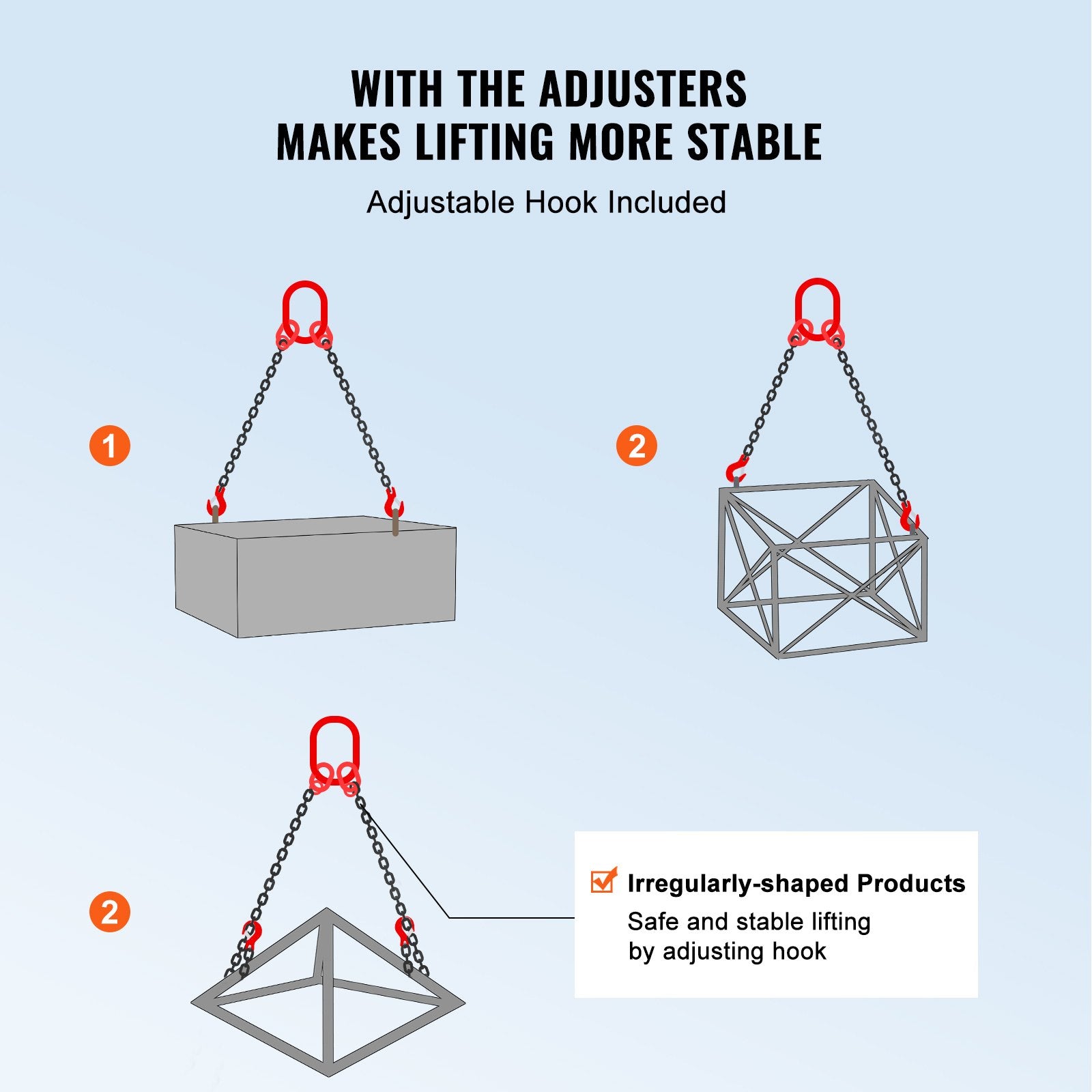 Heavy Duty Chain and Hooks: Constructed of G80 Mn steel chain and alloy steel hook, our chain sling features fully automatic welding technology, designed for long-term use.